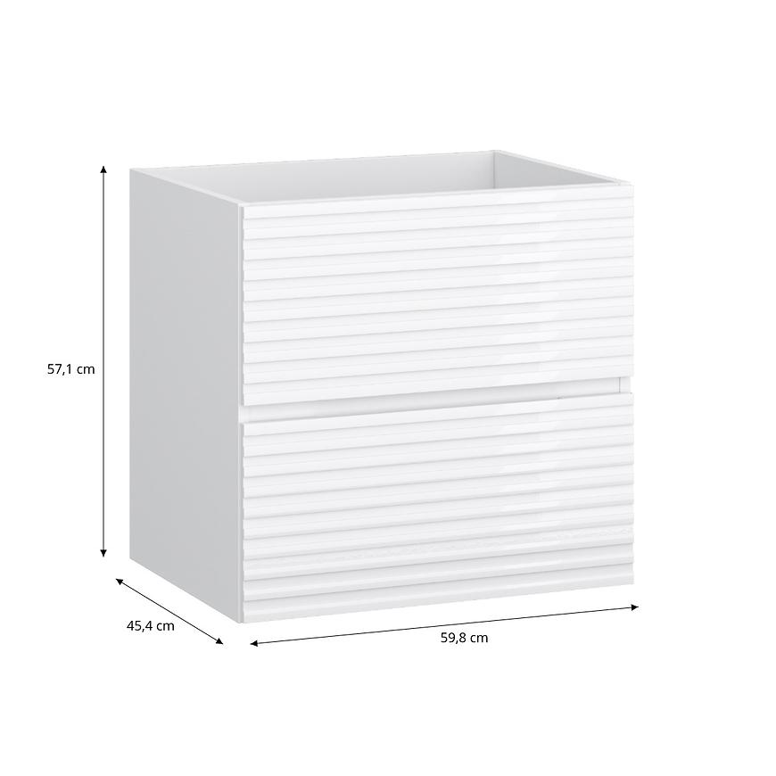 Szafka Bruno 60 biała to podwieszany mebel łazienkowy z kolekcji Bruno o wymiarach 57,1 × 59,8 × 45,4 cm i wadze 20,5 kg. Front wykonano z płyty MDF pokrytej folią PVC w białym połysku, natomiast korpus z płyty wiórowej wykończonej laminatem w białym macie. Szafka posiada 2 pojemne szuflady z systemem samodomykania i wymaga samodzielnego montażu. Jest przeznaczona do kompletowania z umywalkami Plaza 60, Plan 60 lub Sky 60. To funkcjonalne i eleganckie rozwiązanie, które sprawdzi się w nowoczesnej łazience.