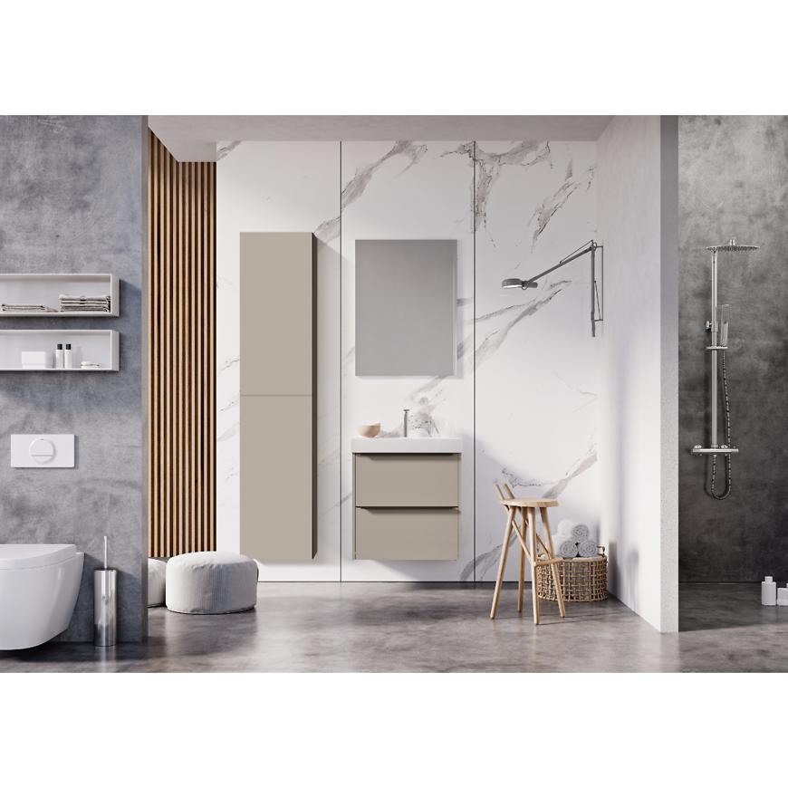Szafka Cetina to elegancki i funkcjonalny element wyposażenia łazienki, który łączy nowoczesny design z wysoką jakością wykonania. Model z kolekcji Cetina został stworzony z trwałej płyty wiórowej, a jego powierzchnia pokryta lakierem w modnym wykończeniu fume matt nadaje wnętrzu wyjątkowego charakteru i subtelnej elegancji. Szafka w wersji 2-szufladowej została zaprojektowana z myślą o wygodzie codziennego użytkowania – system samodomykania sprawia, że szuflady zamykają się cicho i płynnie, zwiększając komfort korzystania z mebla.
