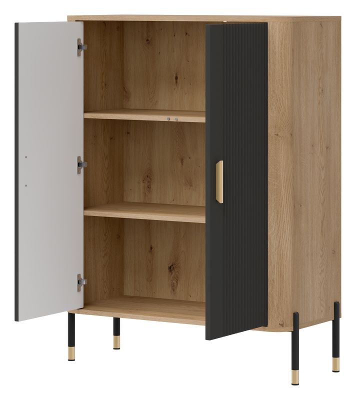 Metalowe uchwyty w dwóch wariantach kolorystycznych – czarne lub złote, pozwalające na personalizację mebli.