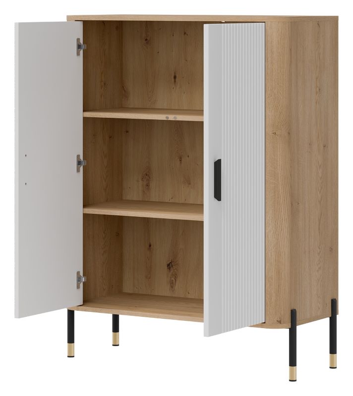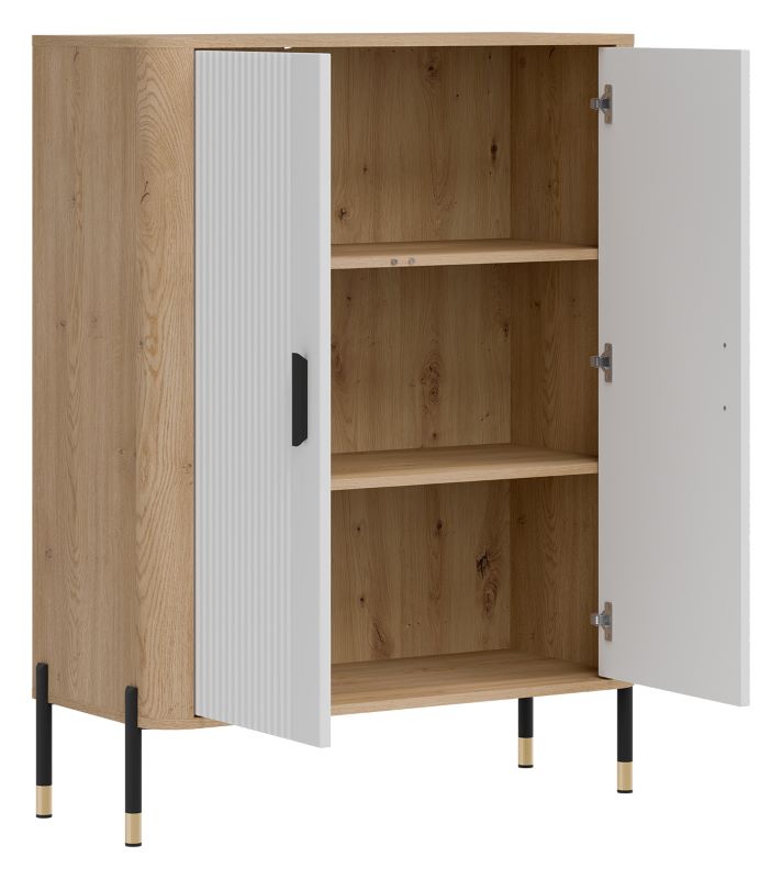 Białe fronty kolekcji Dante w połączeniu z korpusem w dekorze dąb Cremona Torro to idealny wybór do wnętrz, w których dominuje jasność i harmonia. Biel optycznie powiększa przestrzeń, dlatego meble Dante w tej wersji szczególnie dobrze sprawdzą się w mniejszych pomieszczeniach, nadając im lekkości.