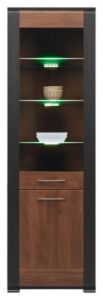 W skład kolekcji wchodzi aż 13 brył, co pozwala na dowolne aranżacje dostosowane do indywidualnych potrzeb. Praktyczne rozwiązania, takie jak system cichego domyku drzwi, wygodne metalowe uchwyty oraz stabilne, drewniane nóżki z chromowaną wstawką, sprawiają, że meble Naomi są nie tylko stylowe, ale także komfortowe w użytkowaniu. Dodatkowo, opcjonalne podświetlenie LED witryn i kredensów pozwala stworzyć przytulną atmosferę we wnętrzu.