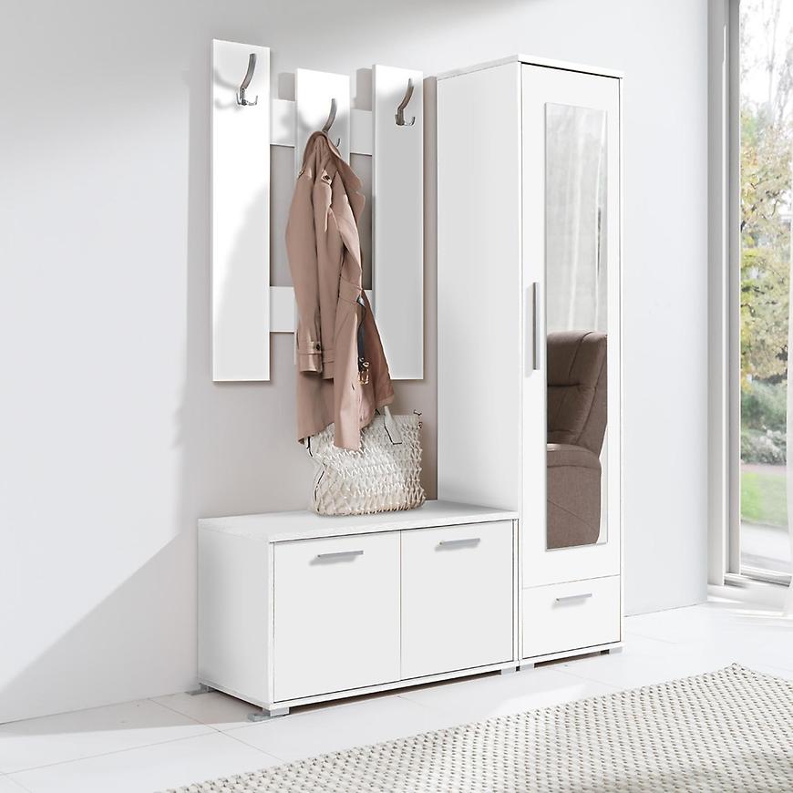 Garderoba Hit to praktyczny zestaw do organizacji przestrzeni w przedpokoju. Posiada wygodne uchwyty, które ułatwiają otwieranie drzwiczek. W skład zestawu wchodzą różne elementy, takie jak wieszak z uchwytami do powieszenia ubrań wierzchnich, szafka-słupek z lustrem oraz szafka dolna na buty. Dzięki temu mebel jest funkcjonalny i pomaga utrzymać porządek w Twoim przedpokoju. O eleganckiej bieli pasuje zarówno do klasycznych, jak i nowoczesnych wnętrz, dodając im oryginalności i ponadczasowego charakteru. Garderoba Hit to praktyczny mebel, który ułatwi Ci organizację przestrzeni i codzienne korzystanie z niego będzie komfortowe.