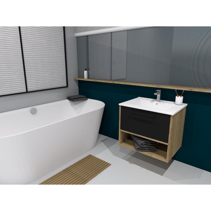 Szafka Kiano w kolorze dąb/czarna to nie tylko funkcjonalny element łazienki, ale również wyjątkowy akcent stylowy. Należy do eleganckiej kolekcji Kiano, charakteryzującej się minimalistycznym designem i wysoką jakością wykonania.