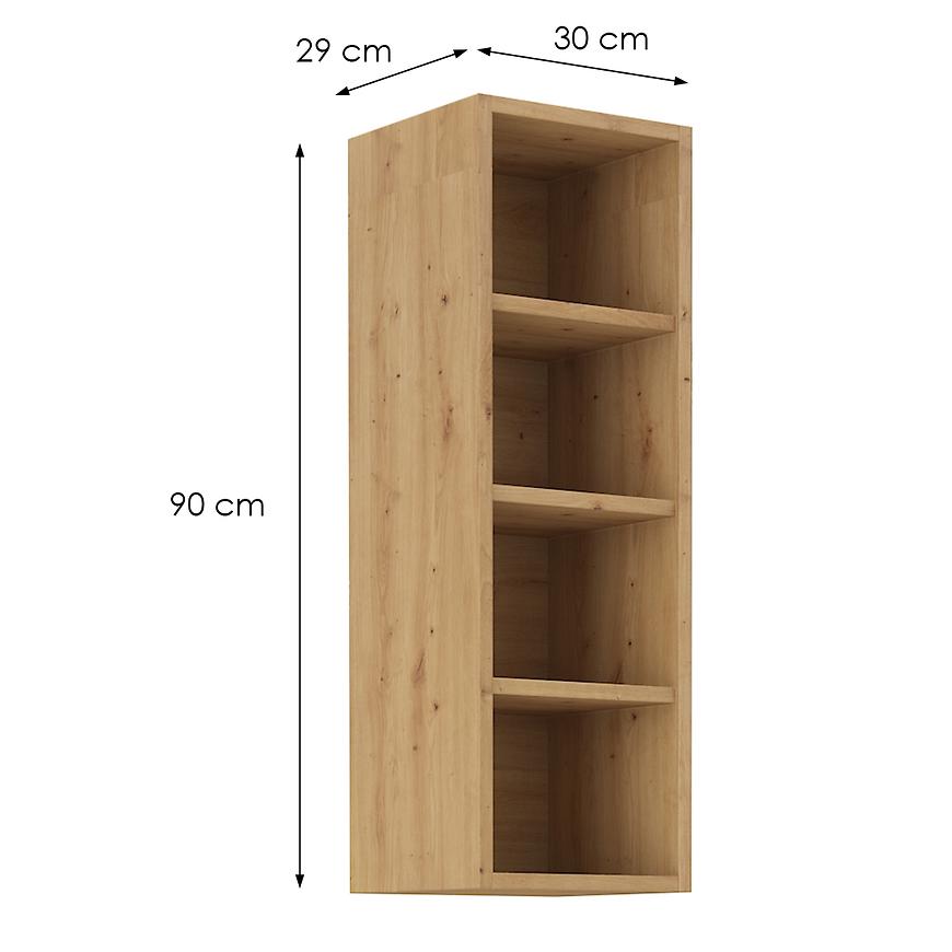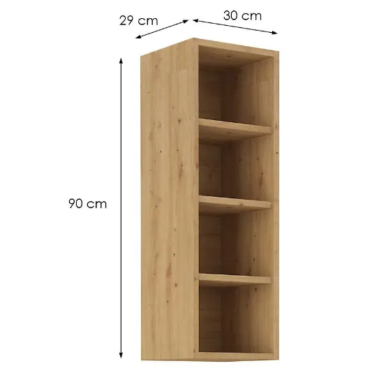 Model 30G-90 OTW dąb artisan sprawdza się jako górna szafka kuchenna, umożliwiając przechowywanie naczyń, przypraw, produktów spożywczych lub drobnych akcesoriów kuchennych. Otwarta konstrukcja zapewnia szybki dostęp do zawartości, co zwiększa wygodę podczas codziennego przygotowywania posiłków.