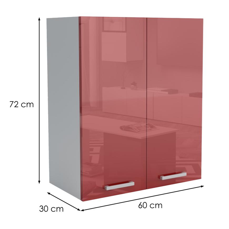 Szafka kuchenna wisząca z kolekcji Lucjan to połączenie nowoczesnej elegancji i wyjątkowego designu. Front szafki w intensywnym czerwonym kolorze przyciąga uwagę, dodając kuchni niezwykle nowoczesnego wyglądu. Połyskujące wykończenie frontów jest zarówno eleganckie, jak i łatwe do czyszczenia, co sprawia, że mebel jest praktyczny i stylowy jednocześnie. Biały matowy korpus stanowi doskonałe tło dla kolorowych frontów, co tworzy harmonijną całość.