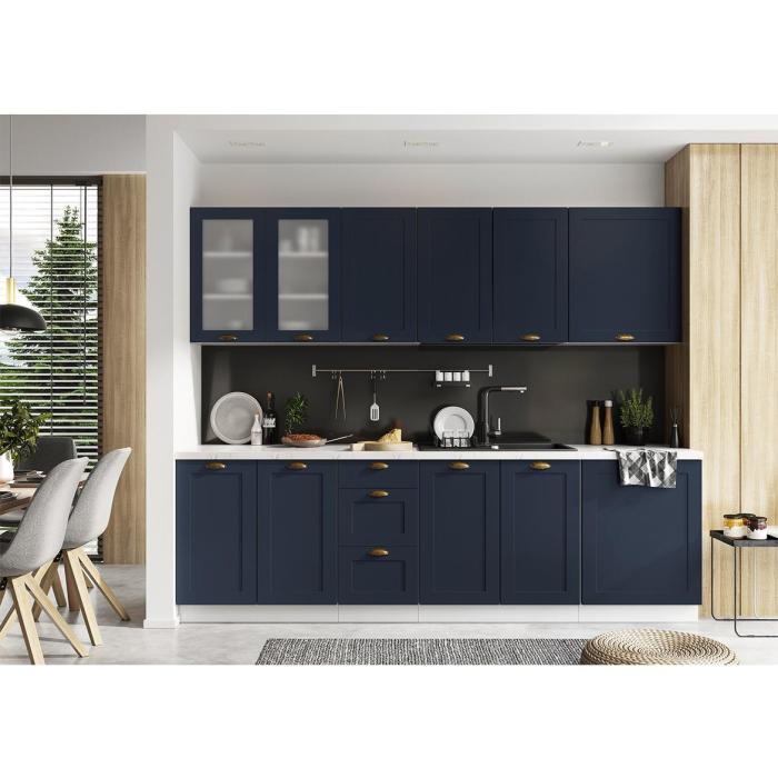 Kolekcja Adele w kolorze granat mat/biały to połączenie klasyki z elegancją. Jest to idealne rozwiązanie dla osób, które pragną umeblować swoją kuchnię w nowoczesnym stylu. Meble wykonane są z najwyższej jakości materiałów - front MDF foliowany, natomiast korpus wykonano z płyty wiórowej laminowanej. Meble z kolekcji Adele są praktyczne i funkcjonalne, a ich użytkowanie należy do przyjemnych.