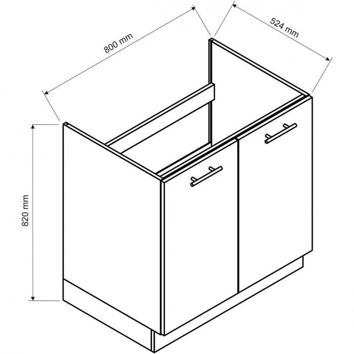 Konfiguracja poszczególnych elementów jest dowolna, pozwala na własną kompozycję kuchenną oraz zagospodarowanie przestrzeni. Uchwyty należy zamówić osobno. Nóżki montażowe 524mm.