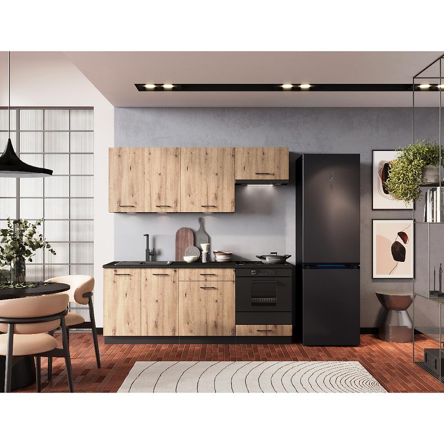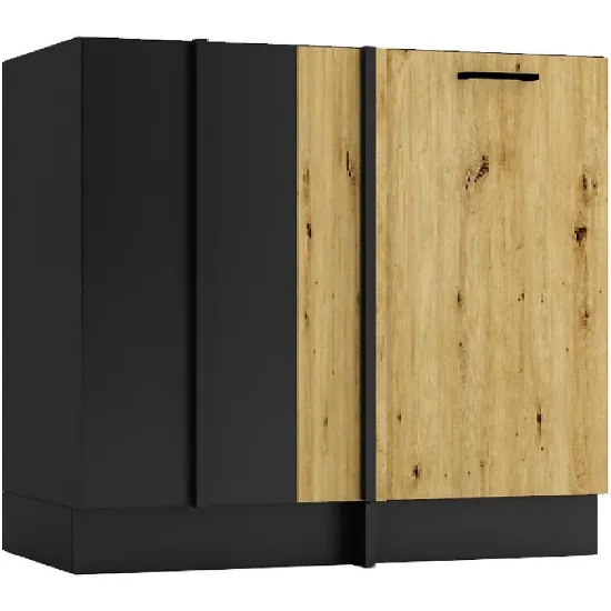 Szafka kuchenna Anika DNP P/L o szerokości 90 cm. Szafka stojąca dostępna w grafitowym wybarwieniu korpusu z frontami w dekorze dąb artisan. Szafka w komplecie posiada uchwyty. Cokół w kolorze korpusu.