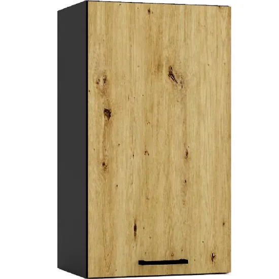 Szafka kuchenna Anika W40 o szerokości 40 cm. Szafka wisząca dostępna w grafitowym wybarwieniu korpusu z frontami w dekorze dąb artisan. Szafka w komplecie posiada uchwyty.