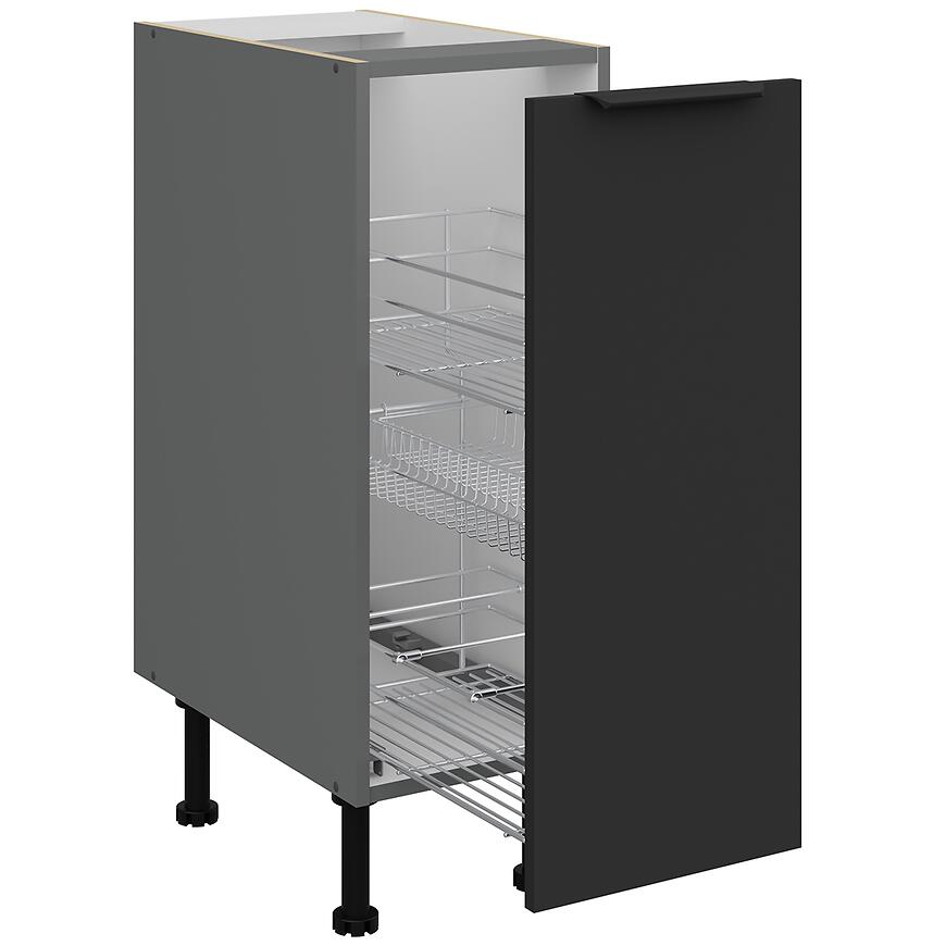 Dzięki matowym frontom w kolorze black szafka doskonale wpisuje się w najnowsze trendy wnętrzarskie, gdzie królują ciemne, eleganckie barwy. Antracytowy korpus harmonizuje z innymi meblami kuchennymi oraz dodatkami, a minimalistyczny design sprawia, że szafka pasuje zarówno do nowoczesnych, jak i klasycznych aranżacji kuchennych.
