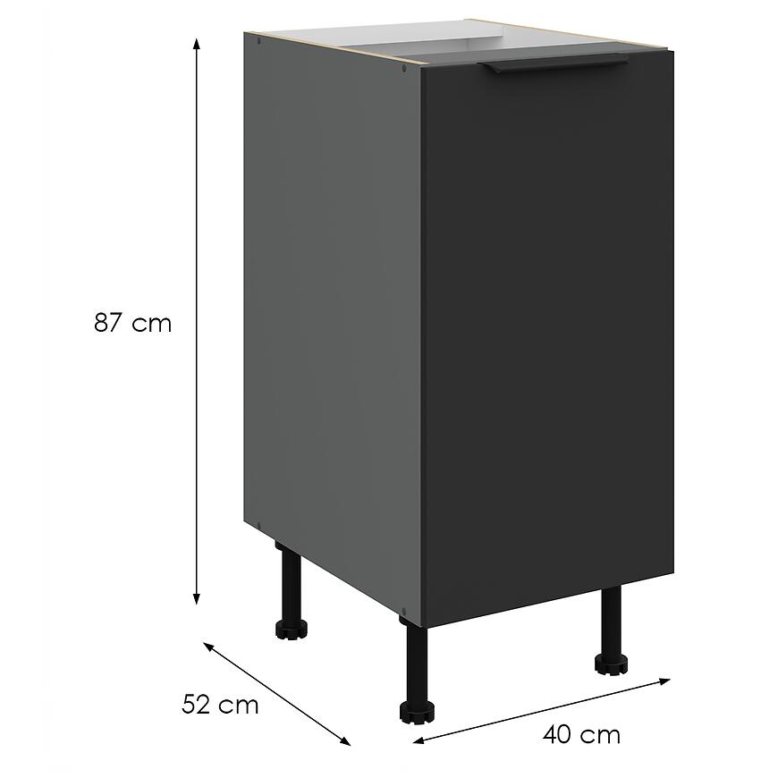 Dzięki matowym frontom w kolorze black szafka doskonale wpisuje się w najnowsze trendy wnętrzarskie, gdzie królują ciemne, eleganckie barwy. Antracytowy korpus harmonizuje z innymi meblami kuchennymi oraz dodatkami, a minimalistyczny design sprawia, że szafka pasuje zarówno do nowoczesnych, jak i klasycznych aranżacji kuchennych.