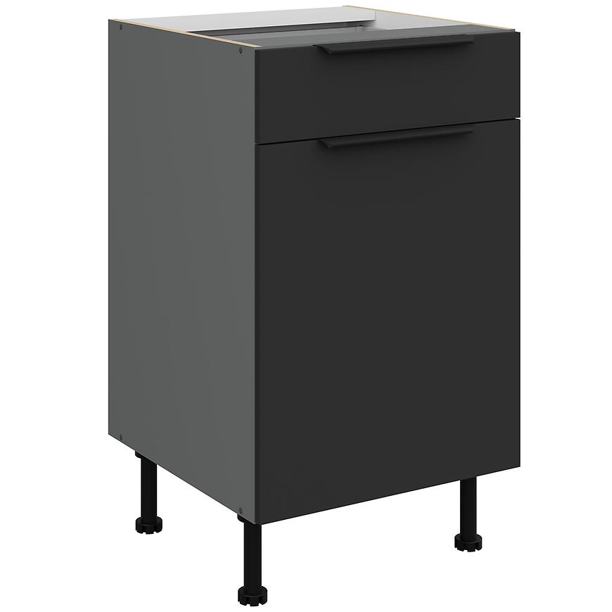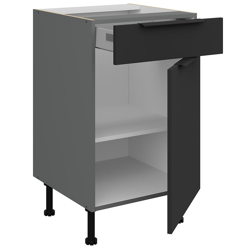 Szafka należy do dolnych szafek kuchennych, co sprawia, że idealnie komponuje się z innymi elementami kuchennymi w systemie modułowym. Matowe wykończenie frontów ogranicza widoczność odcisków palców, dzięki czemu mebel przez długi czas zachowuje estetyczny wygląd, a technologia Anti Fingerprint zwiększa komfort codziennego użytkowania.