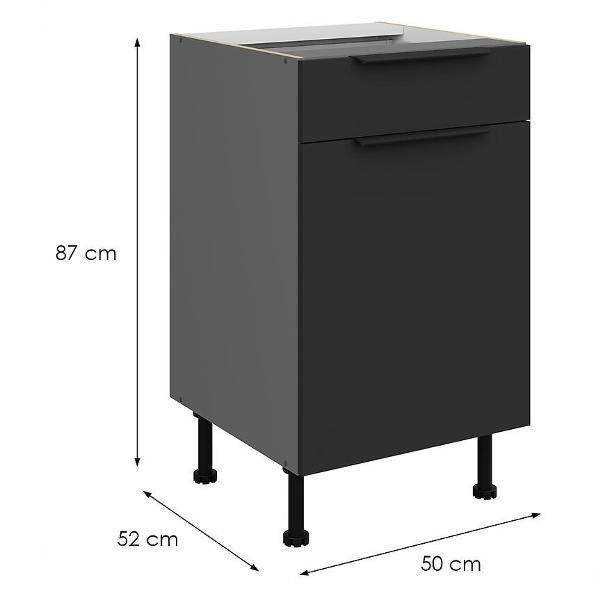 Dzięki matowym frontom w kolorze black szafka doskonale wpisuje się w najnowsze trendy wnętrzarskie, gdzie królują ciemne, eleganckie barwy. Antracytowy korpus harmonizuje z innymi meblami kuchennymi oraz dodatkami, a minimalistyczny design sprawia, że szafka pasuje zarówno do nowoczesnych, jak i klasycznych aranżacji kuchennych.