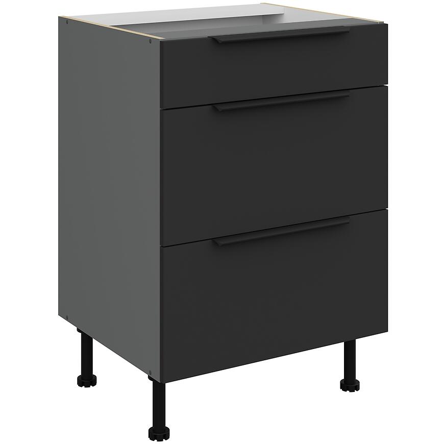 Szafka należy do dolnych szafek kuchennych, co sprawia, że idealnie komponuje się z innymi elementami kuchennymi w systemie modułowym. Matowe wykończenie frontów ogranicza widoczność odcisków palców, dzięki czemu mebel przez długi czas zachowuje estetyczny wygląd, a technologia Anti Fingerprint zwiększa komfort codziennego użytkowania.