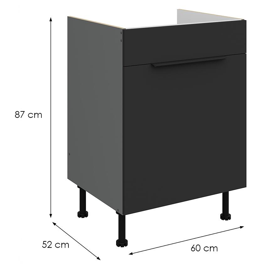 Dzięki matowym frontom w kolorze black szafka doskonale wpisuje się w najnowsze trendy wnętrzarskie, gdzie królują ciemne, eleganckie barwy. Antracytowy korpus harmonizuje z innymi meblami kuchennymi oraz dodatkami, a minimalistyczny design sprawia, że szafka pasuje zarówno do nowoczesnych, jak i klasycznych aranżacji kuchennych.