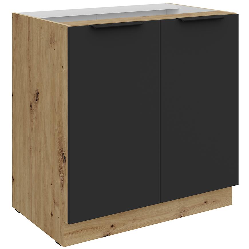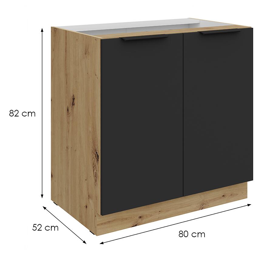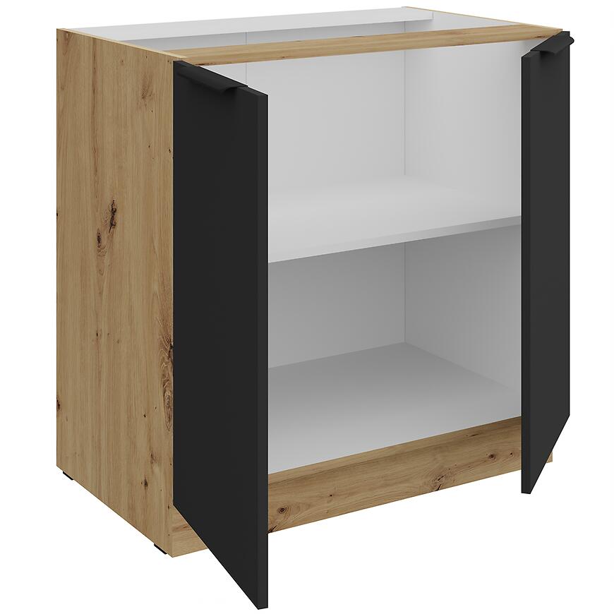 Szafka kuchenna Aria-Bl/Ar Anti Fingerprint łączy nowoczesny design z praktycznym wykonaniem. Fronty w kolorze czarnym z matowym wykończeniem wprowadzają elegancję, a korpus w kolorze dębu artisan dodaje ciepła i naturalnego wyglądu wnętrzu. Model należy do kolekcji Aria Black i został zaprojektowany jako dolna szafka kuchenna, która idealnie komponuje się w nowoczesnych aranżacjach kuchennych.