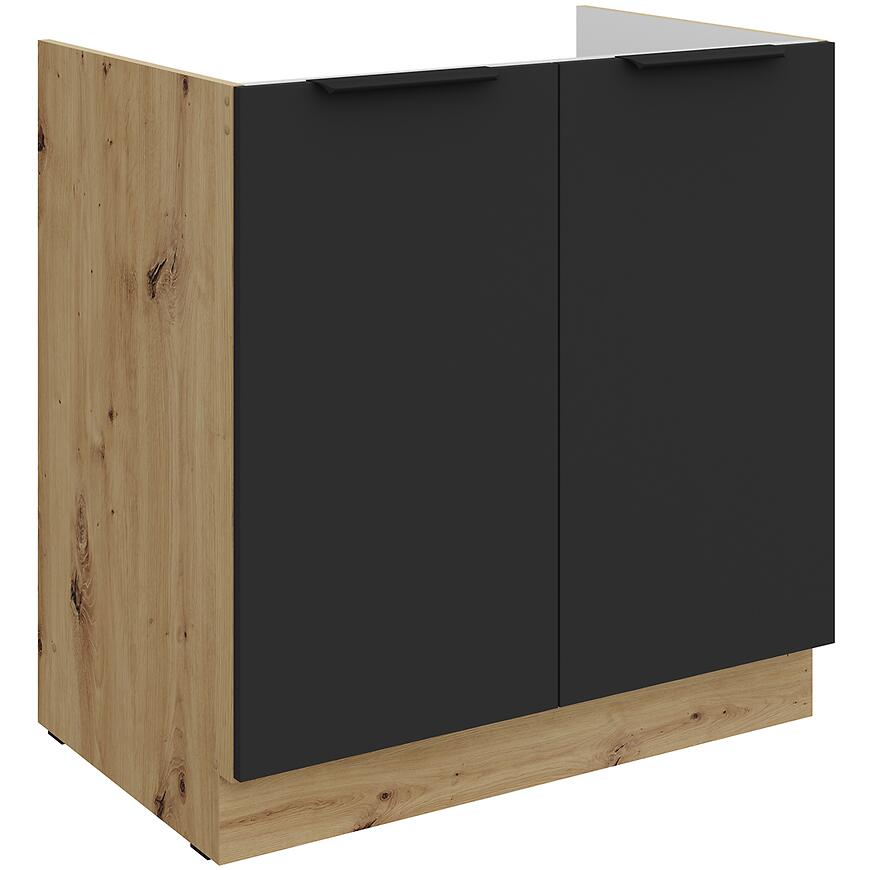 Szafka kuchenna Aria-Bl/Ar Anti Fingerprint łączy nowoczesny design z praktycznym wykonaniem. Fronty w kolorze czarnym z matowym wykończeniem dodają kuchni elegancji, a korpus w kolorze dębu artisan wprowadza ciepło i naturalny wygląd. Model należy do kolekcji Aria Black i został zaprojektowany jako dolna szafka kuchenna, która doskonale komponuje się z nowoczesnymi aranżacjami wnętrz.