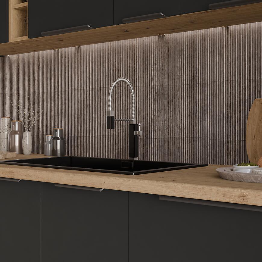 Szafka Aria-Bl/Ar Anti Fingerprint to praktyczny i stylowy element wyposażenia kuchni. Czarne fronty matowe są odporne na odciski palców, co ułatwia utrzymanie czystości. Jasny korpus w drewnopodobnym wybarwieniu dodaje lekkości i harmonii wnętrzu. Szafka doskonale sprawdzi się w nowoczesnych kuchniach, zapewniając funkcjonalną przestrzeń do przechowywania.