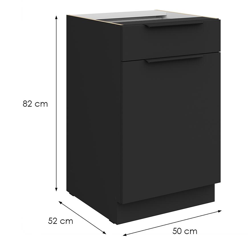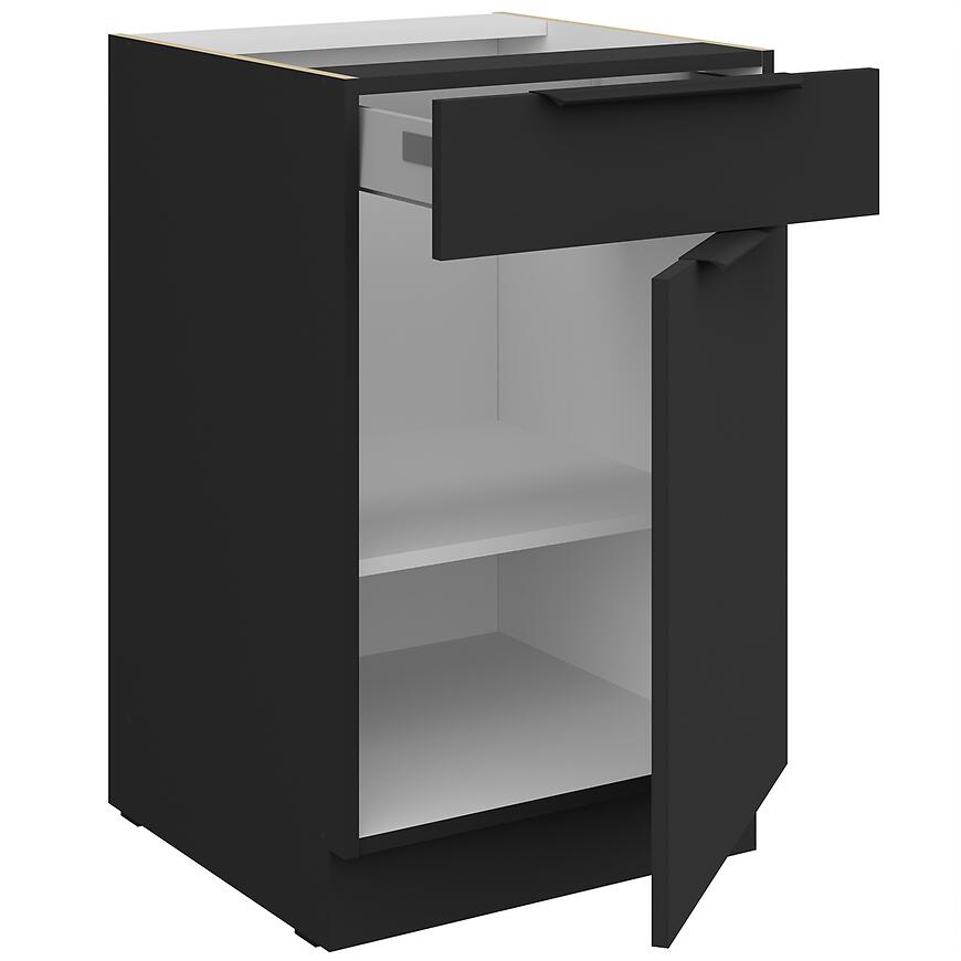 Model Aria-Bl/Bl Anti Fingerprint 50d 1f 1s Bb z kolekcji Aria Black to nowoczesna i praktyczna szafka dolna o szerokości 50 cm. Wyposażona w pojemną szufladę oraz drzwiczki, doskonale sprawdzi się w każdej kuchni, oferując optymalne miejsce do przechowywania.
