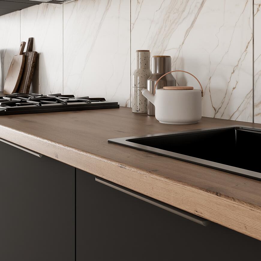 Czarne, matowe fronty z powłoką Anti Fingerprint gwarantują elegancki wygląd i łatwe utrzymanie czystości – bez widocznych śladów palców.