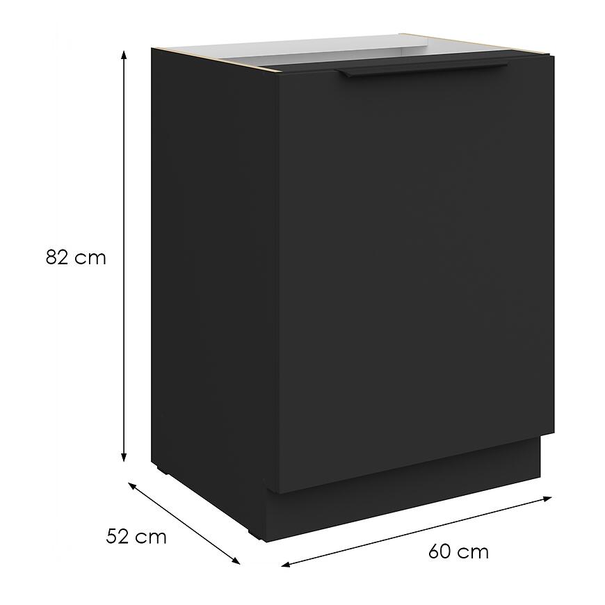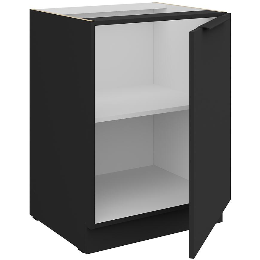 Szafka Aria-Bl/Bl Anti Fingerprint 60d 1f Bb z kolekcji Aria Black to dolny mebel kuchenny wyposażony w jeden front, zapewniający estetyczne i wygodne przechowywanie naczyń lub produktów spożywczych. Fronty z powłoką Anti Fingerprint ułatwiają utrzymanie czystości, a matowe wykończenie nadaje elegancki wygląd.