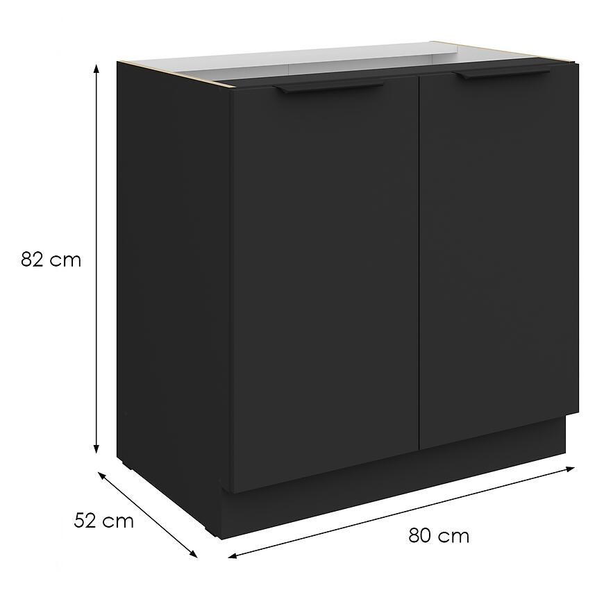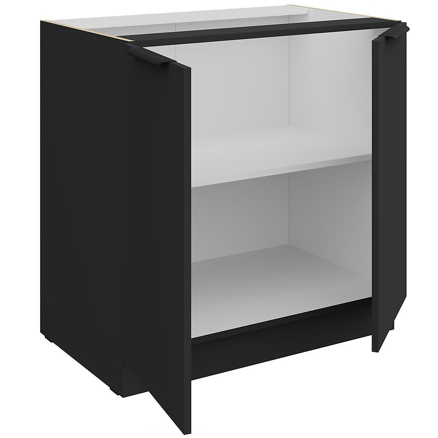 Szafka Aria-Bl/Bl Anti Fingerprint 80d 2f Bb z kolekcji Aria Black to dolny mebel kuchenny o czarnych, matowych frontach i korpusie, odpornych na odciski palców. Dwudrzwiowa konstrukcja zapewnia większą pojemność i wygodny dostęp do przechowywanych akcesoriów kuchennych.
