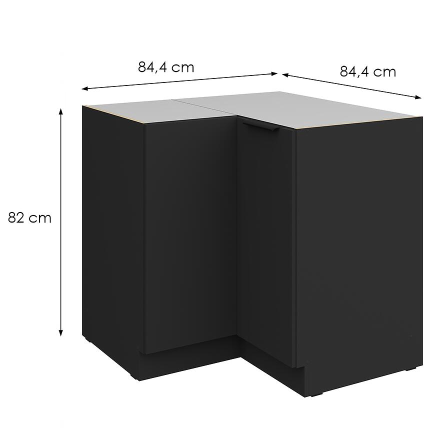 Model Aria-Bl/Bl Anti Fingerprint 90x90 Dn 2f Bb to narożna szafka dolna o szerokości i głębokości 84,4 cm, idealna do wykorzystania narożników kuchennych. Posiada dwa fronty, które ułatwiają dostęp do wnętrza, a system cichego domyku zapewnia komfort i elegancję użytkowania.