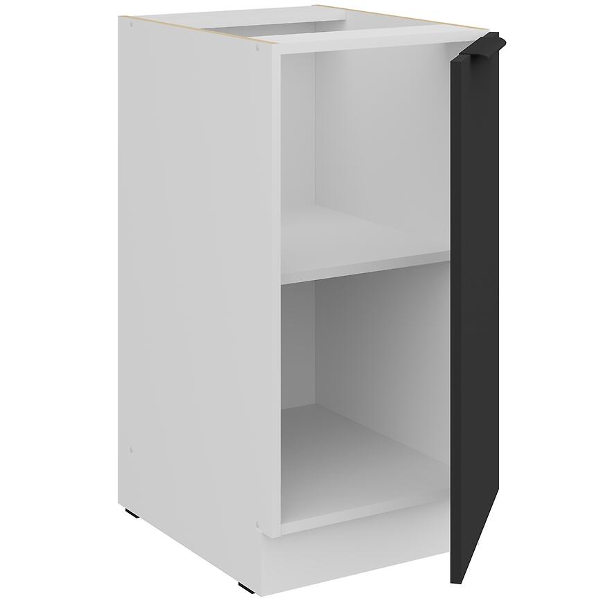 Szafka Aria-Bl/Wh Anti Fingerprint 40d 1f Bb oferuje praktyczne miejsce do przechowywania w jednej szufladzie, ułatwiając organizację akcesoriów kuchennych. Matowy czarny front jest odporny na odciski palców, a biały korpus nadaje wnętrzu nowoczesnego charakteru.