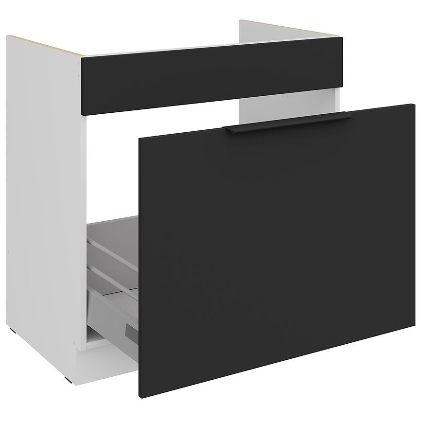 Szafka kuchenna Aria-Bl/Wh Anti Fingerprint łączy elegancki wygląd z praktycznym wykonaniem. Front w kolorze czarnym z matowym wykończeniem nadaje kuchni minimalistyczny i stylowy charakter, a korpus w kolorze białym wprowadza świeżość i jasność do wnętrza. Model należy do kolekcji Aria Black i jest przeznaczony jako dolna szafka kuchenna, idealna do nowoczesnych aranżacji kuchennych.