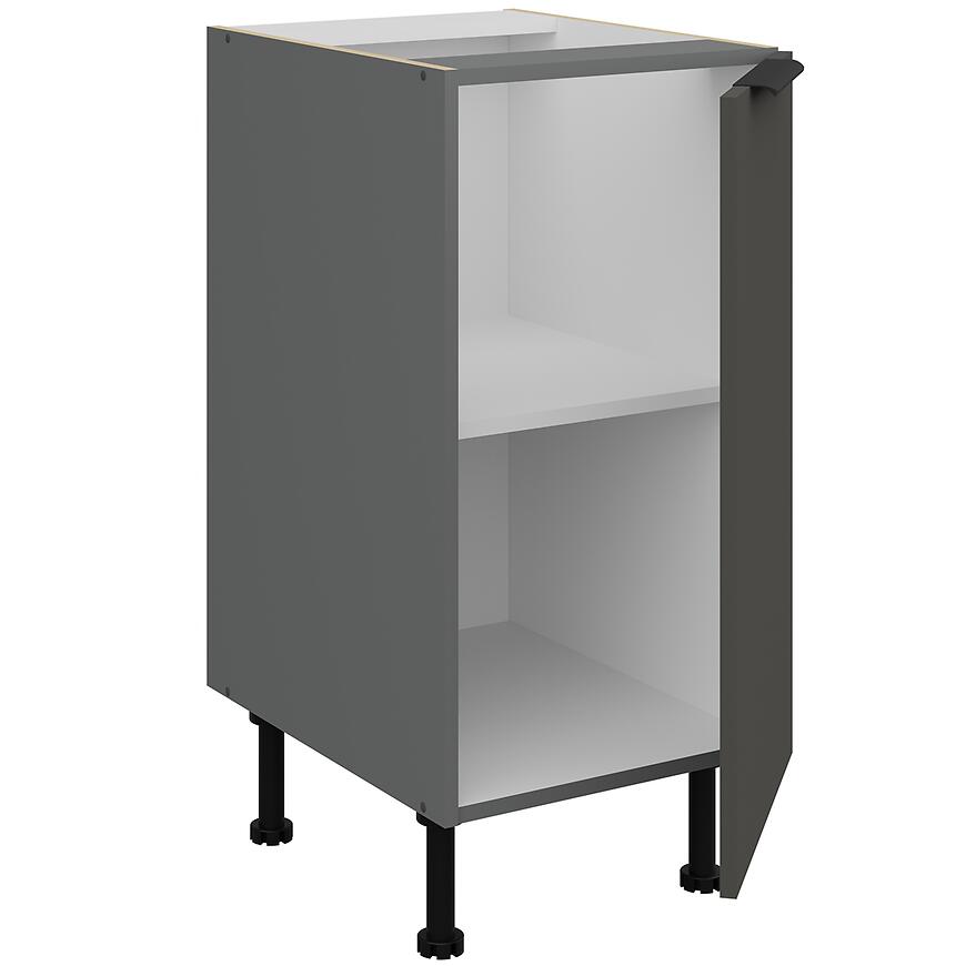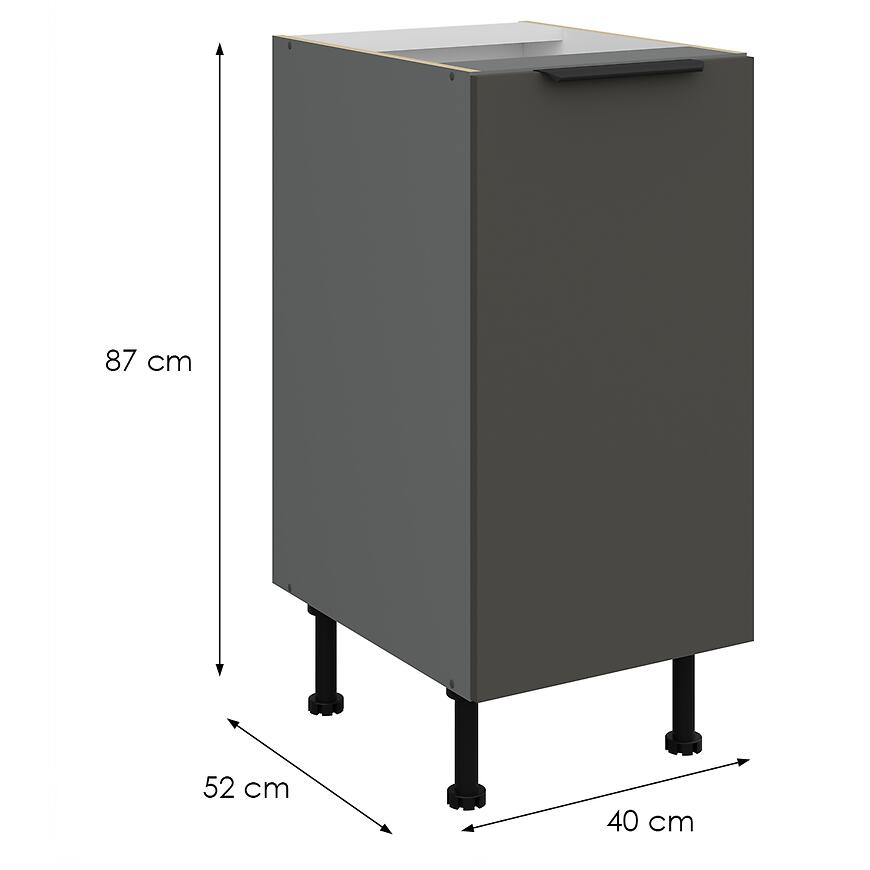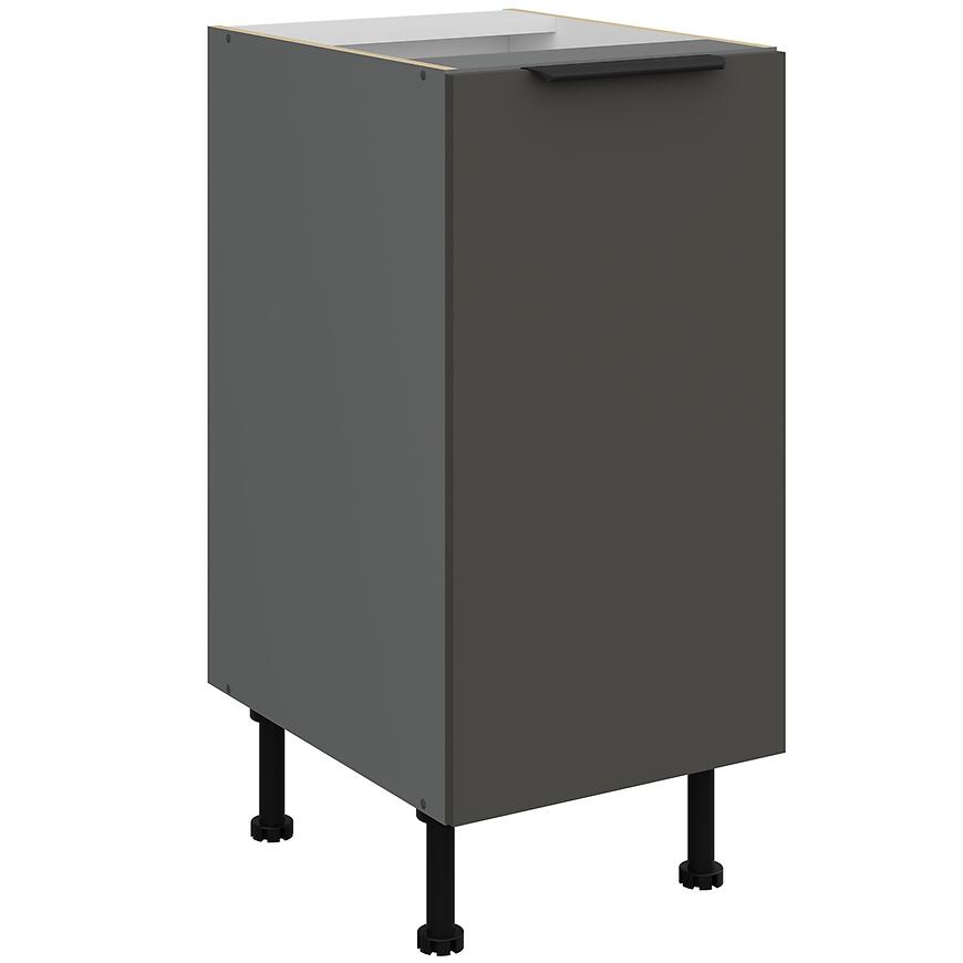 Szafka Aria-Gr/Ant Anti Fingerprint 40d 1f Bb z kolekcji Aria Graphite to praktyczny i stylowy mebel kuchenny, który łączy nowoczesny design z wysoką funkcjonalnością. Fronty w grafitowym kolorze z matowym wykończeniem są odporne na odciski palców, co ułatwia utrzymanie czystości w kuchni i nadaje wnętrzu elegancki, minimalistyczny charakter. Antracytowy korpus i dopasowany cokół gwarantują stabilność mebla, a nóżki w zestawie ułatwiają jego ustawienie i zapewniają odpowiednią wentylację pod szafką.