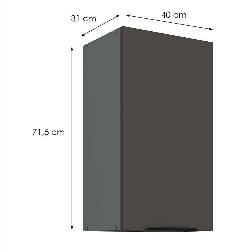 Szafka Aria-Gr/Ant 40g-72 1f to praktyczny i elegancki element górnej zabudowy kuchennej. Kompaktowe wymiary, nowoczesny wygląd i wygodny system cichego domyku sprawiają, że jest to mebel zarówno funkcjonalny, jak i atrakcyjny wizualnie. Doskonale komponuje się z innymi szafkami kolekcji Aria Graphite, tworząc spójny i harmonijny zestaw kuchenny.