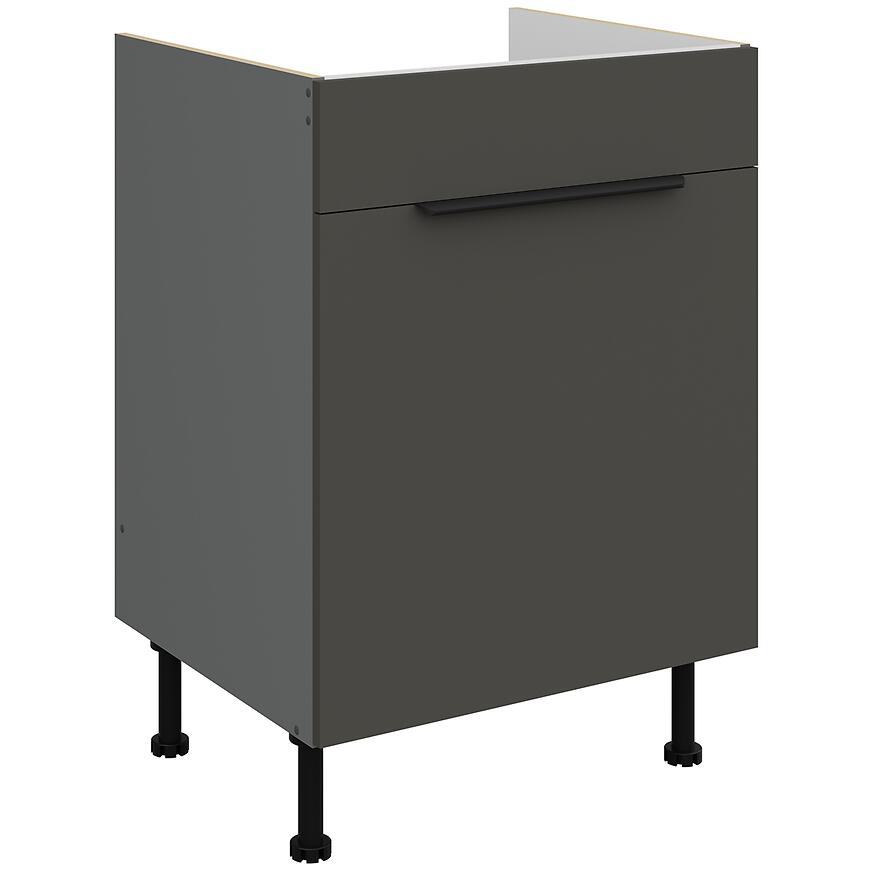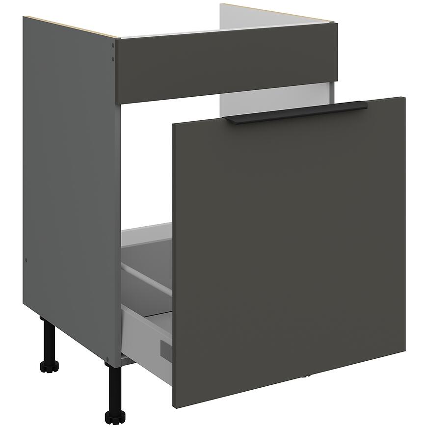 Szafka kuchenna Aria-Gr/Ant Anti Fingerprint 60zl 1s Bb z kolekcji Aria Graphite to funkcjonalny mebel łączący nowoczesny design z wygodą codziennego użytkowania. Fronty w eleganckim odcieniu graphite połączone z antracytowym korpusem tworzą spójną i stylową kompozycję, która doskonale wpisuje się w nowoczesne aranżacje kuchenne, nadając wnętrzu minimalistyczny i estetyczny charakter. Matowe wykończenie frontów nie tylko podkreśla elegancję szafki, ale także ogranicza widoczność odcisków palców, co ułatwia utrzymanie czystości.