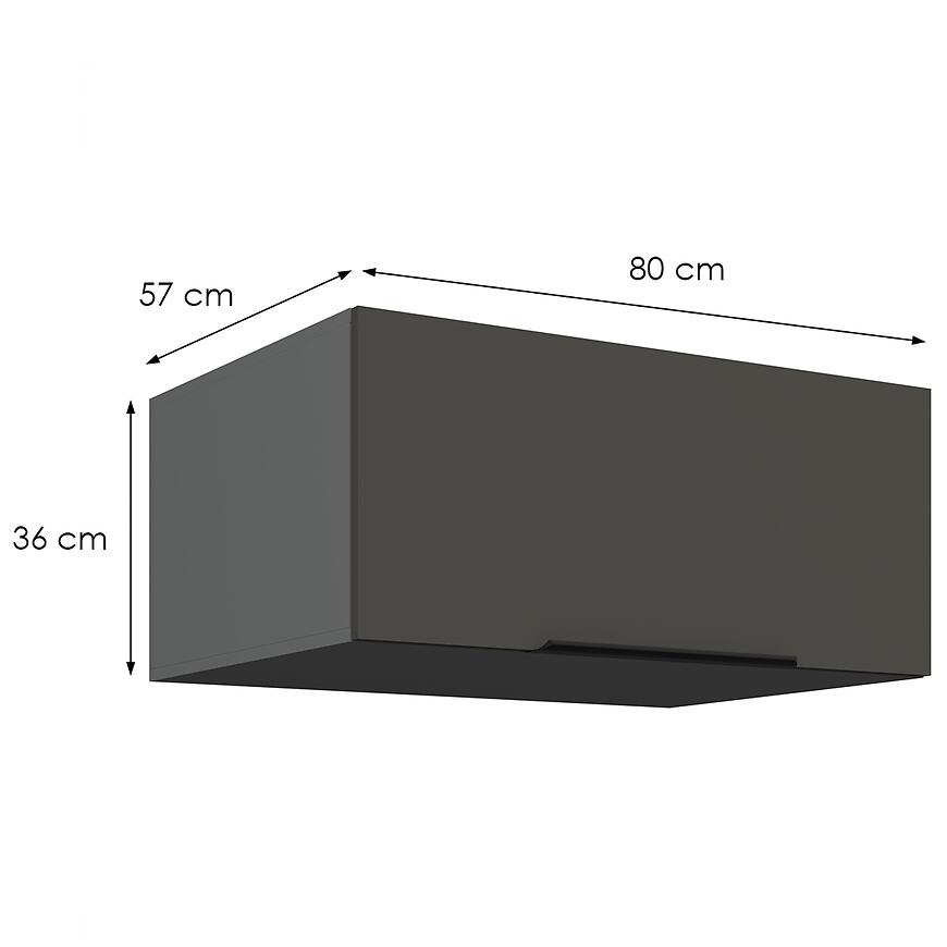 Szafka Kuchenna Aria-Gr/Ant Anti Fingerprint 80 Nagu-36 1f to szeroki model z kolekcji aria graphite, przeznaczony do górnej zabudowy kuchennej. Dzięki wysokości 36 cm, szerokości 80 cm oraz głębokości 57 cm szafka oferuje dużą przestrzeń do przechowywania naczyń, garnków i akcesoriów kuchennych, idealnie sprawdzając się nad blatem roboczym.