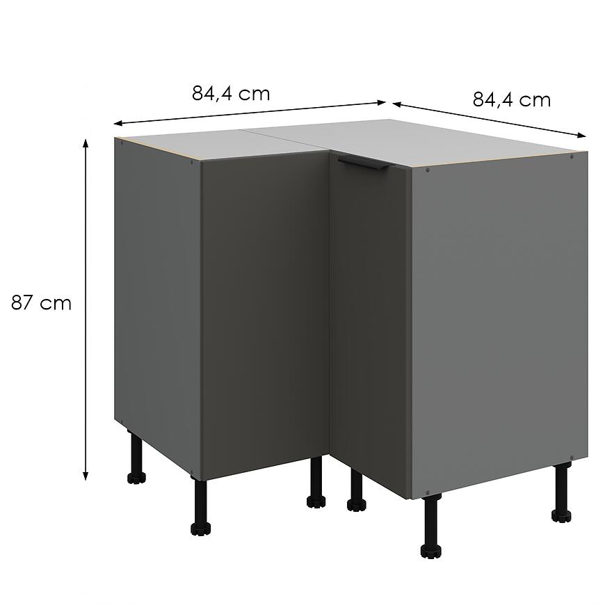 Szafka o wymiarach wysokość 87 cm, szerokość 84,4 cm, głębokość 84,4 cm została wyposażona w dwie szuflady typu Dn, które umożliwiają wygodne przechowywanie przyborów kuchennych, naczyń lub akcesoriów codziennego użytku. System cichego domyku zapewnia bezgłośne zamykanie szuflad, chroniąc przed trzaskaniem i zwiększając komfort użytkowania. Nogi w zestawie pozwalają na stabilne ustawienie szafki na każdej powierzchni, a dodatkowo ułatwiają jej czyszczenie pod spodem.