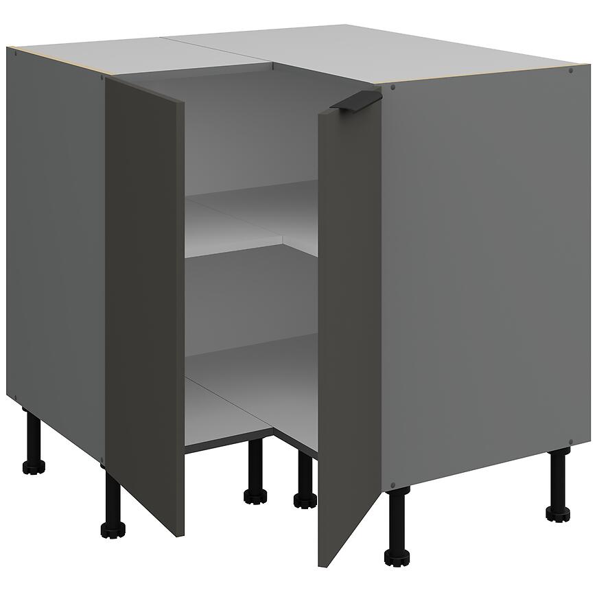 Szafka Aria-Gr/Ant Anti Fingerprint 90x90 Dn 2f Bb z kolekcji Aria Graphite to nowoczesny i praktyczny mebel kuchenny, który łączy elegancki design z maksymalną funkcjonalnością. Fronty w grafitowym kolorze posiadają matowe wykończenie i specjalną powłokę anti-fingerprint, dzięki której odciski palców i zabrudzenia nie pozostają widoczne. Antracytowy korpus i dopasowany cokół w tym samym kolorze zapewniają trwałość, stabilność i estetyczny wygląd całej konstrukcji, a matowe wykończenie podkreśla nowoczesny charakter szafki.
