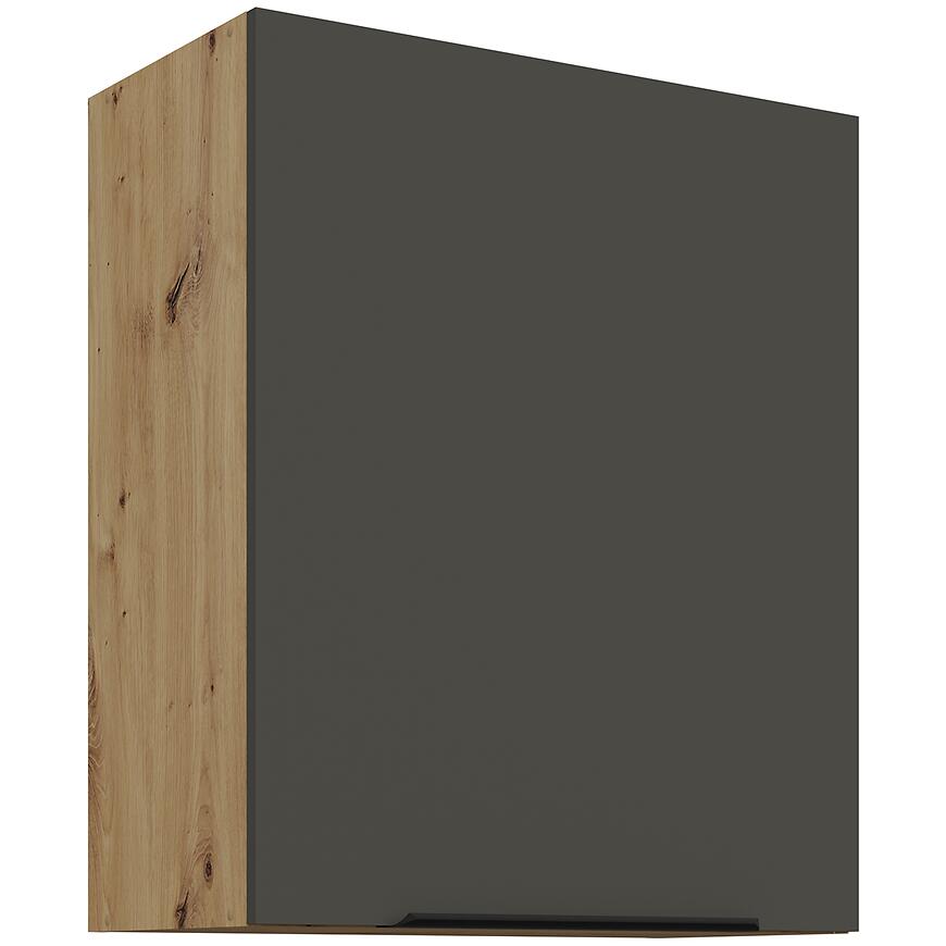 Szafka Kuchenna Aria-Gr/Ar Anti Fingerprint 60g-72 1f to funkcjonalny mebel z kolekcji aria graphite, który doskonale sprawdzi się w górnej zabudowie nowoczesnej kuchni. Dzięki wysokości 71,5 cm, szerokości 60 cm oraz głębokości 31 cm oferuje wygodną przestrzeń do przechowywania naczyń, przyborów kuchennych i produktów spożywczych, łącząc praktyczność z eleganckim wyglądem.
