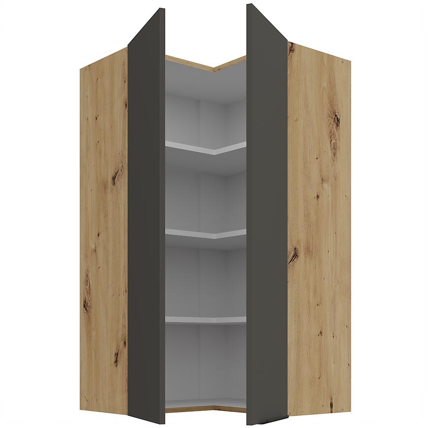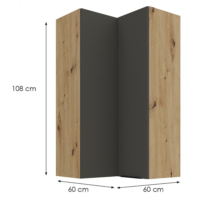 Szafka Kuchenna Aria-Gr/Ar Anti Fingerprint 60x60 Gn-108 2f (90°) to narożny model z kolekcji aria graphite, zaprojektowany z myślą o maksymalnym wykorzystaniu przestrzeni w górnej zabudowie kuchennej. Dzięki wysokości 108 cm, szerokości 60 cm i głębokości 60 cm szafka oferuje dużą pojemność, umożliwiając przechowywanie naczyń, garnków i innych akcesoriów kuchennych w narożnikach, które są często trudno dostępne.