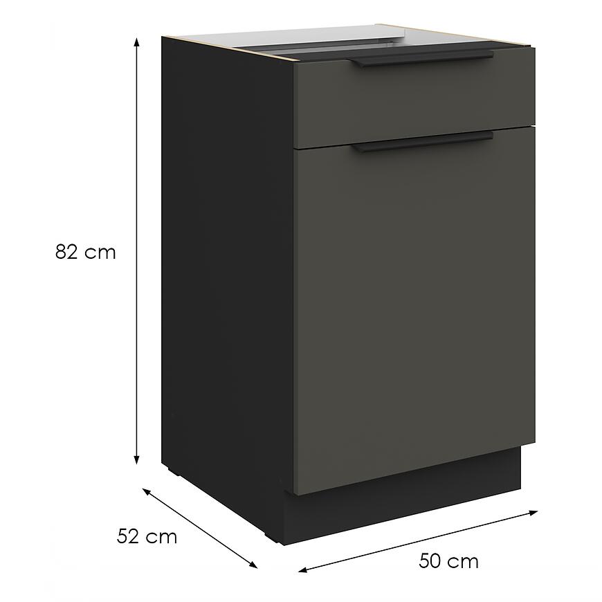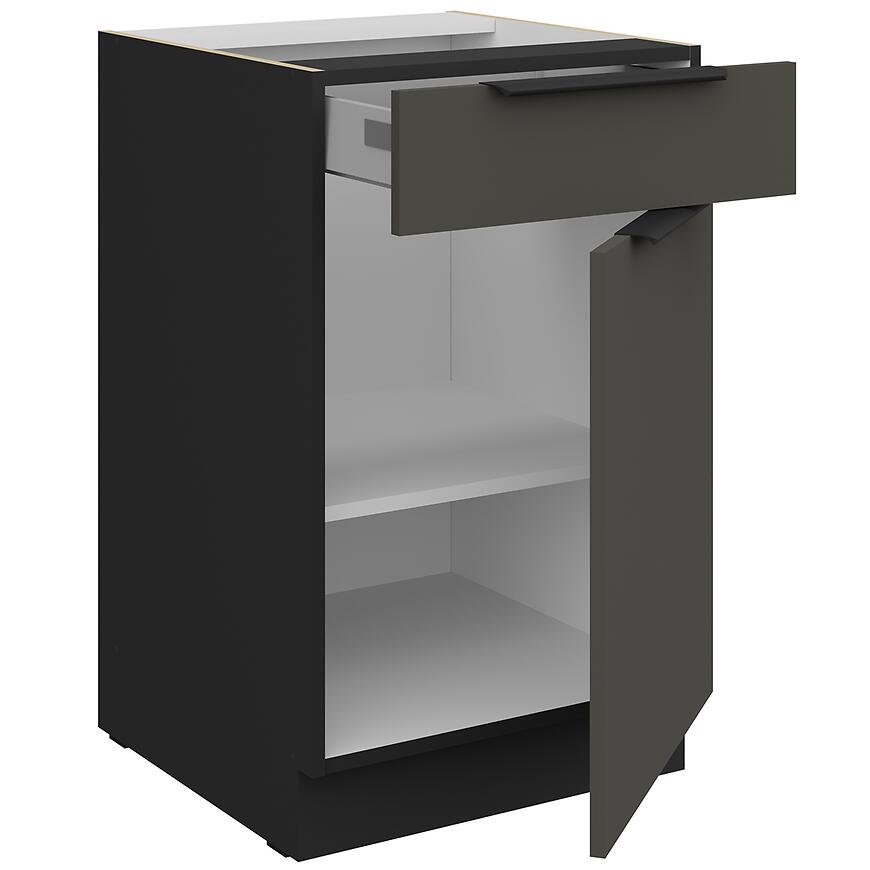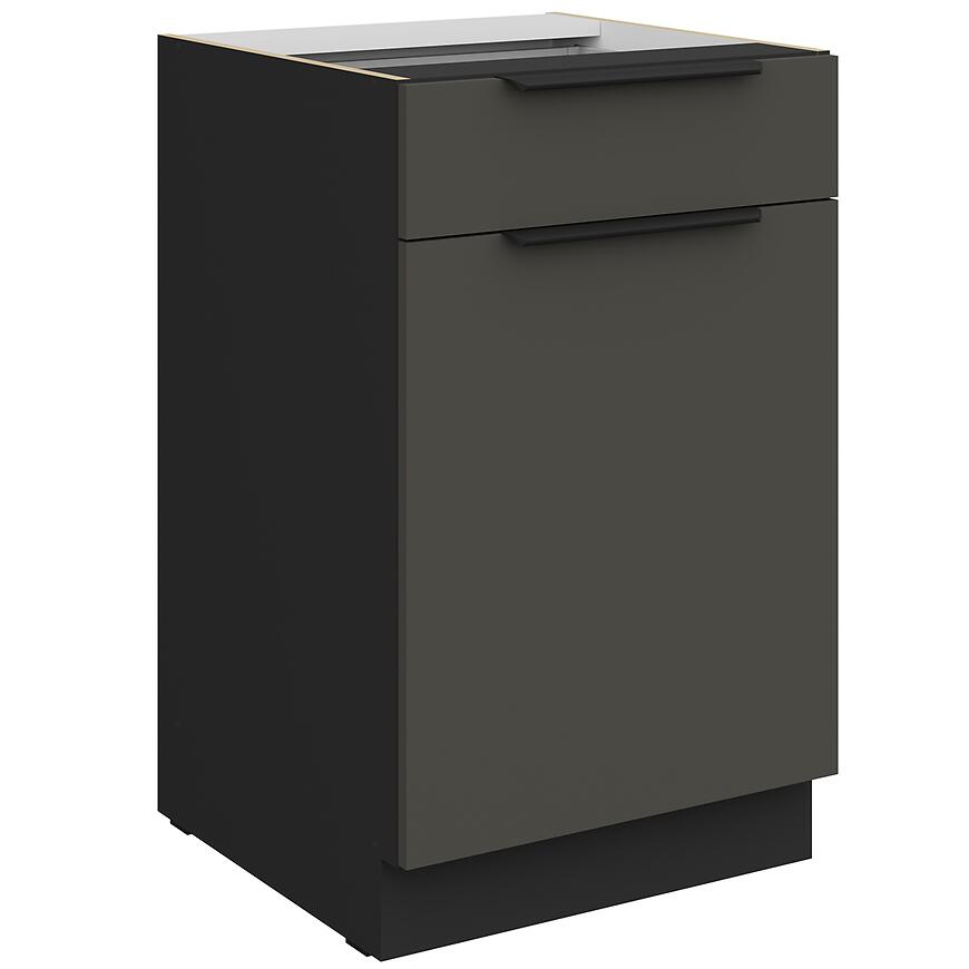 Szafka Aria-Gr/Bl 50d 1f 1s Bb z kolekcji Aria Graphite to elegancka i funkcjonalna szafka dolna o szerokości 50 cm, idealna do nowoczesnych kuchni.