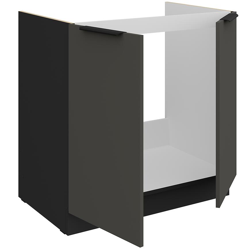 Szafka Kuchenna Aria-Gr/Bl Anti Fingerprint 80zl 2f Bb to praktyczny, nowoczesny i elegancki mebel kuchenny z grafitowym frontem i czarnym korpusem – doskonały do każdej kuchni.