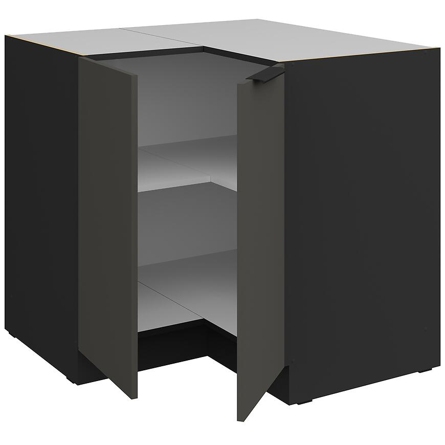 Szafka kuchenna Aria-Gr/Bl Anti Fingerprint 90x90 Dn 2f Bb z kolekcji Aria Graphite to mebel łączący nowoczesny design, trwałość i wygodę użytkowania. W eleganckim odcieniu graphite frontów oraz czarnym korpusie, szafka prezentuje się niezwykle stylowo i estetycznie, a matowe wykończenie frontów minimalizuje widoczność odcisków palców i zabrudzeń, co sprawia, że mebel długo zachowuje schludny wygląd.