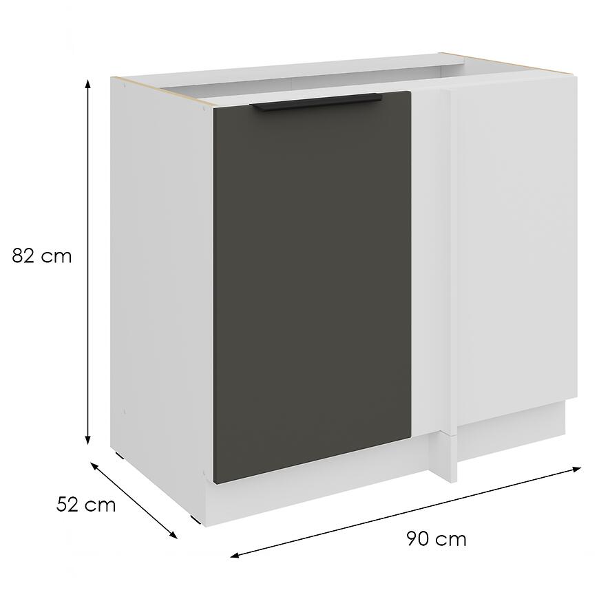 Szafka Aria-Gr/Wh 105 Nd 1f to narożna szafka dolna z kolekcji Aria Graphite, zaprojektowana tak, by maksymalnie wykorzystać przestrzeń w kuchni. Dzięki szerokości 90 cm i głębokości 52 cm doskonale sprawdza się w narożnych zabudowach, oferując dużą powierzchnię do przechowywania.