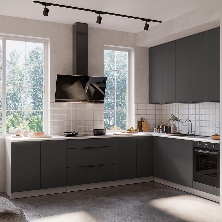 Szafka Kuchenna Aria-Gr/Wh Anti Fingerprint 105 Nd 1f Bb to narożna szafka dolna o eleganckim, grafitowym froncie i białym korpusie. Solidna, praktyczna i odporna na zabrudzenia – idealna do nowoczesnych kuchni.