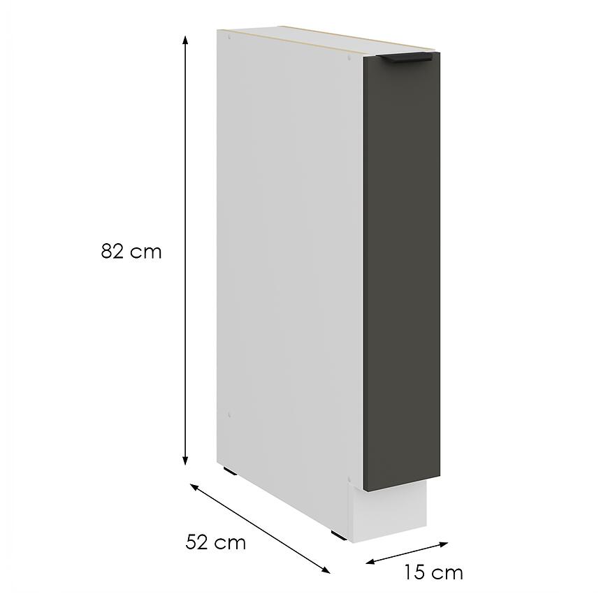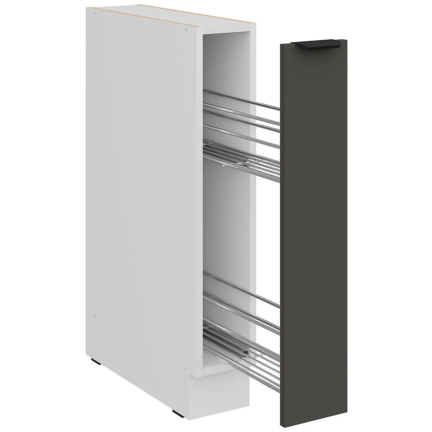 Szafka Aria-Gr/Wh 15d Cargo z kolekcji Aria Graphite to doskonały sposób na zagospodarowanie wąskiej przestrzeni w kuchni. Szerokość 15 cm i system cargo sprawiają, że idealnie nadaje się do przechowywania przypraw, butelek i drobnych akcesoriów kuchennych.