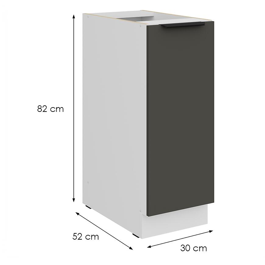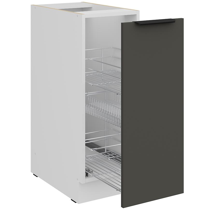 Szafka kuchenna Aria-Gr/Wh 30d Cargo z kolekcji Aria Graphite to idealne rozwiązanie do wykorzystania nawet najmniejszej przestrzeni w kuchni. Dzięki wąskiej konstrukcji (30 cm szerokości) i wysuwanym koszom cargo, umożliwia wygodne przechowywanie przypraw, butelek i drobnych akcesoriów.