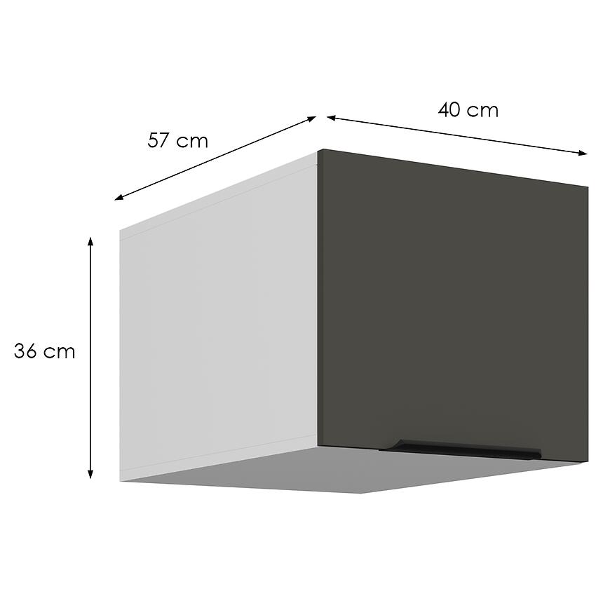 Szafka kuchenna Aria-Gr/Wh Anti Fingerprint 40 Nagu-36 1f w kolorze graphite i białym. Wysoka 36 cm, szeroka 40 cm, głęboka 57 cm, z matowym wykończeniem i cichym domykiem. Idealna do nowoczesnej kuchni.