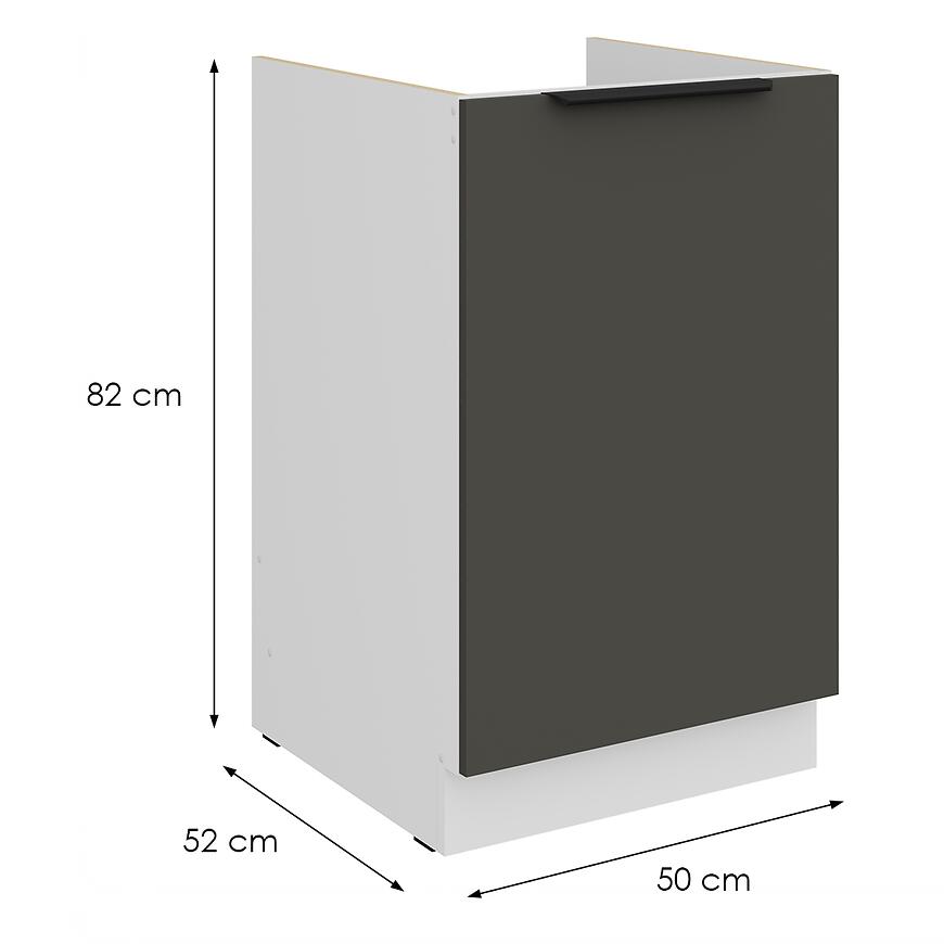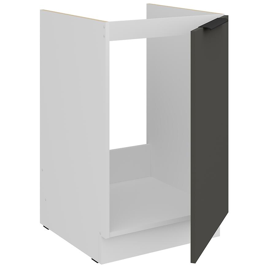 Kontrast pomiędzy graphite frontem a białym korpusem nadaje nowoczesny charakter kuchni, a matowe wykończenie minimalizuje widoczność zabrudzeń. Szafka nie posiada blatu, dzięki czemu można dopasować go do indywidualnych potrzeb i stylu kuchni.