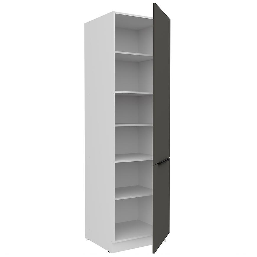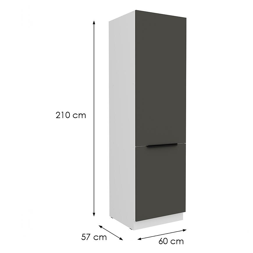 Szafka Kuchenna Aria-Gr/Wh Anti Fingerprint 60dk-210 2f z kolekcji ARIA GRAPHITE łączy elegancki design z funkcjonalnym wnętrzem. Jej wymiary – wysokość 210 cm, szerokość 60 cm i głębokość 57 cm – pozwalają na optymalne wykorzystanie przestrzeni w zabudowie kolumnowej, oferując pojemne miejsce do przechowywania naczyń, produktów i akcesoriów kuchennych. Matowe fronty w kolorze graphite doskonale kontrastują z białym korpusem, tworząc nowoczesny i stylowy akcent w kuchni.