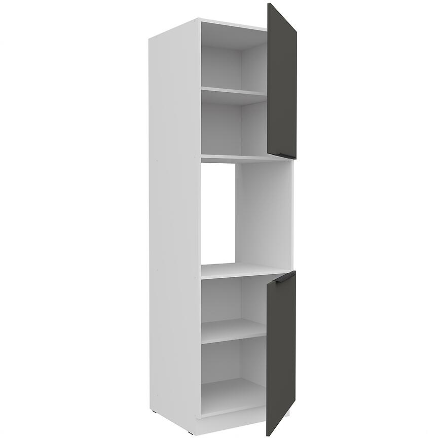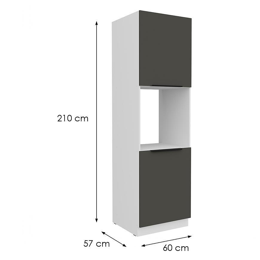 Szafka Kuchenna Aria-Gr/Wh Anti Fingerprint 60dp-210 2f z kolekcji ARIA GRAPHITE łączy nowoczesny wygląd z funkcjonalnym wnętrzem. Jej wymiary – wysokość 210 cm, szerokość 60 cm i głębokość 57 cm – pozwalają na maksymalne wykorzystanie przestrzeni w zabudowie kolumnowej, oferując praktyczne miejsce do przechowywania naczyń, produktów i akcesoriów kuchennych. Matowe fronty w kolorze graphite pięknie kontrastują z białym korpusem, tworząc nowoczesny akcent w kuchni.