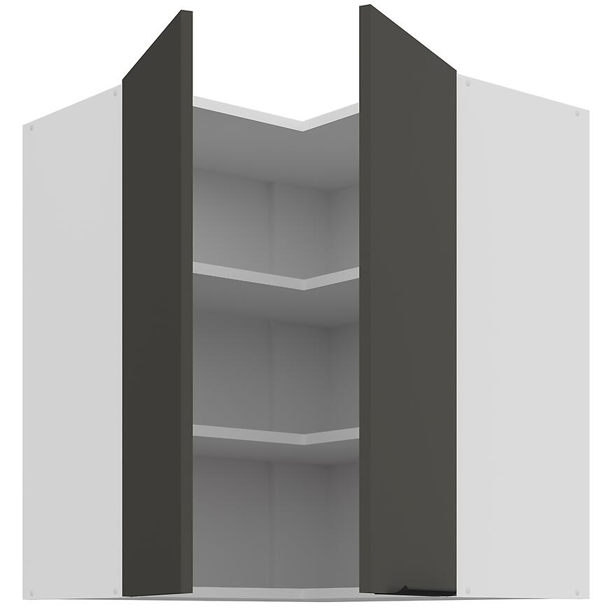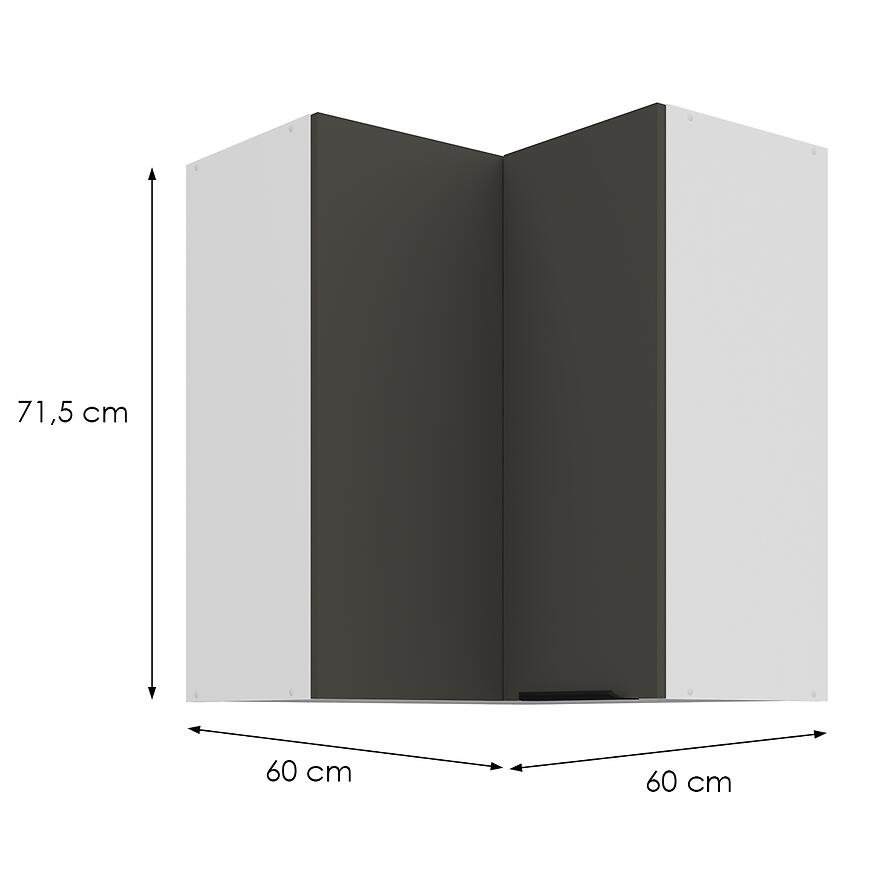 Szafka kuchenna Aria-Gr/Wh Anti Fingerprint 60x60 Gn-72 2f (90°) w kolorze graphite i białym. Wysoka 71,5 cm, szeroka 60 cm, głęboka 60 cm, z matowym wykończeniem, cichym domykiem i dwoma frontami. Idealna do narożnej kuchni.