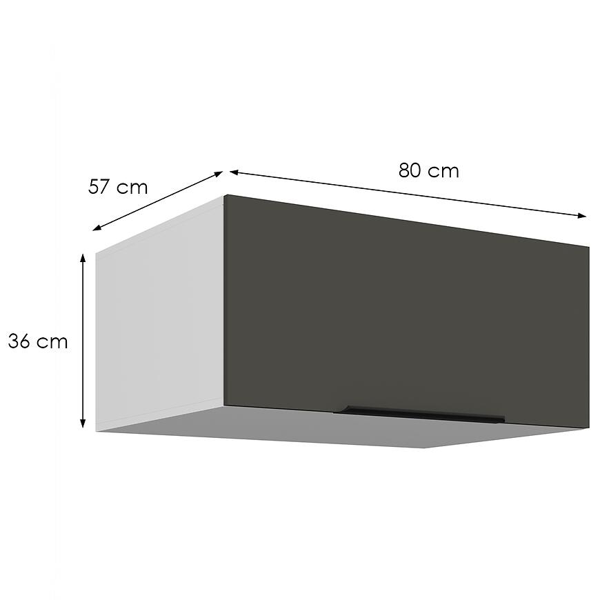 Szafka Aria-Gr/Wh Anti Fingerprint 80 Nagu-36 1f sprawdzi się w kuchniach o różnej wielkości. Dzięki szerokim wymiarom można ją zestawić z innymi szafkami górnymi z kolekcji Aria Graphite, tworząc spójną zabudowę. Umożliwia wygodne przechowywanie naczyń, artykułów spożywczych i akcesoriów kuchennych, wprowadzając nowoczesny i elegancki charakter wnętrza.